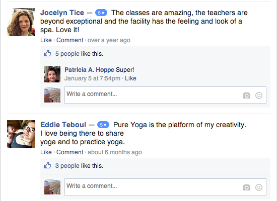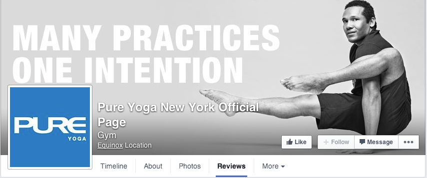 For example, if you were looking for a Yoga studio in NYC and you came across the Pure Yoga Facebook Page you would be compelled to book a class because of their nice graphics and really great reviews: